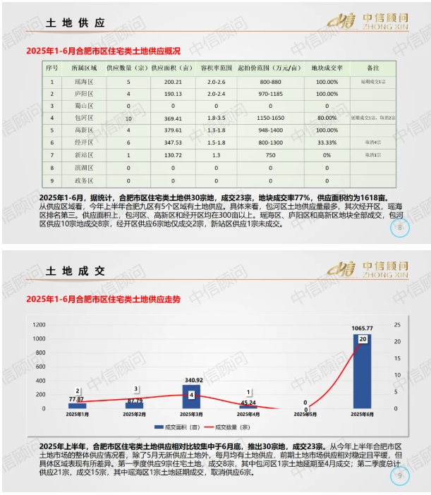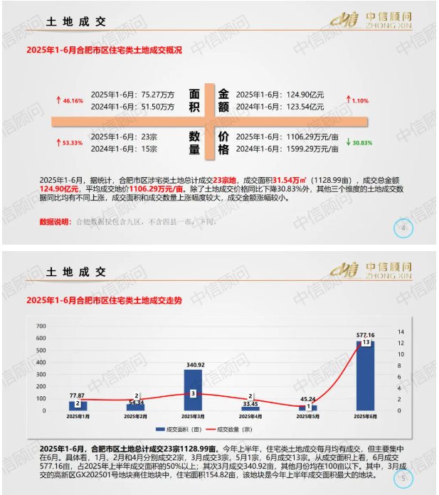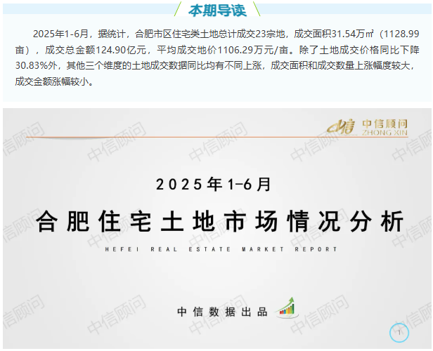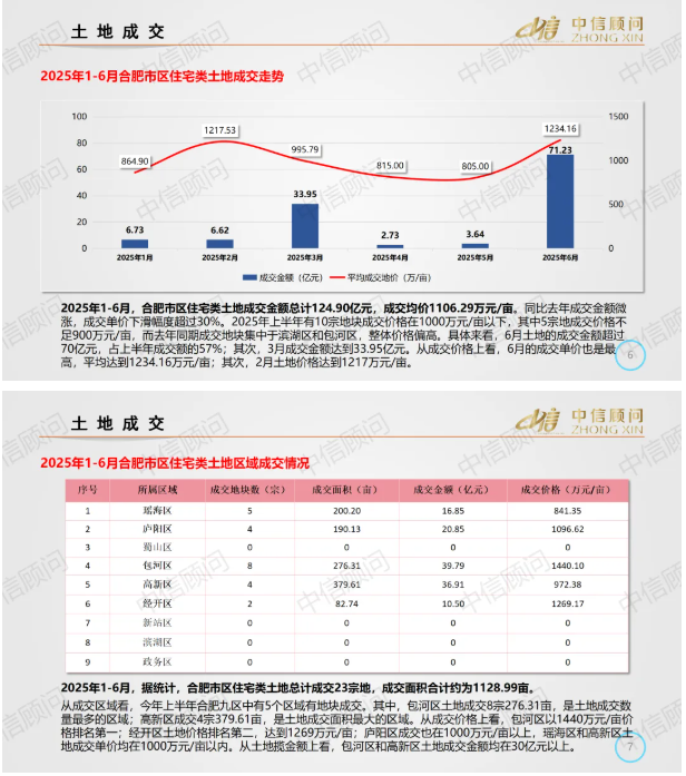 土地市場 | 2025年1-6月,合肥住宅用地成交23宗1129畝,平均地價1106萬元/畝
