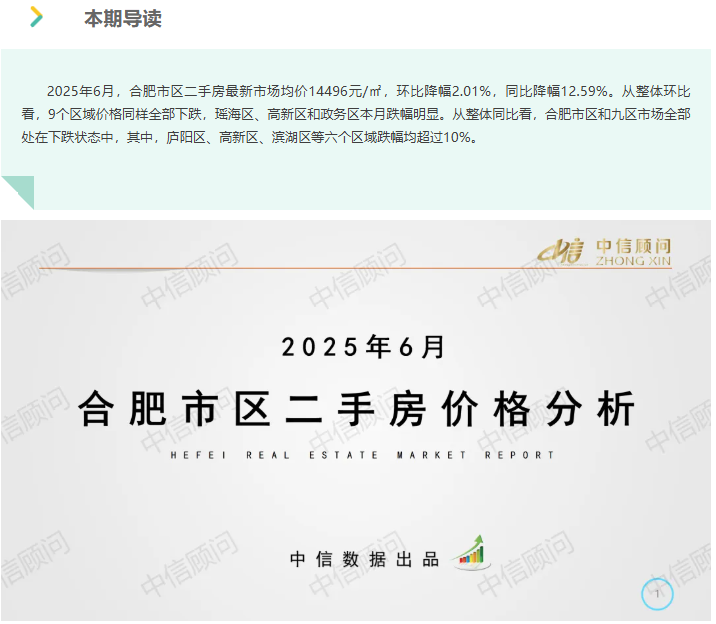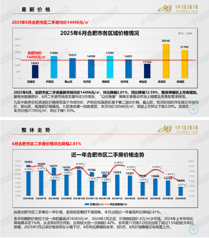 二手房市場 | 2025年6月,合肥住宅均價1.45萬元/㎡,環(huán)比下降2.01%,同比下降12.59%