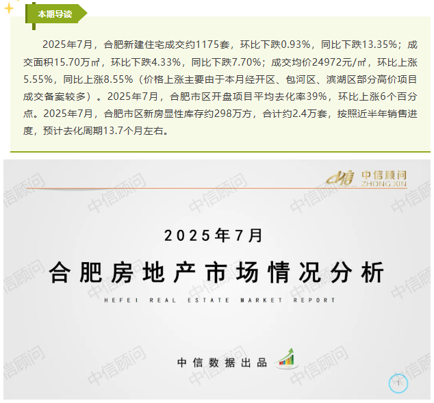 新房市場 | 2025年7月,合肥新房成交量環比下跌0.93%,同比下跌13.35%
