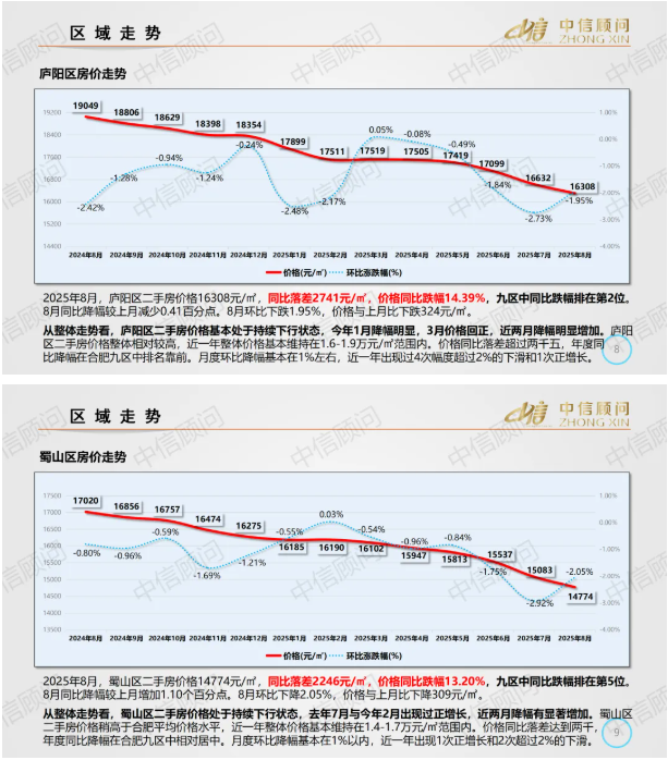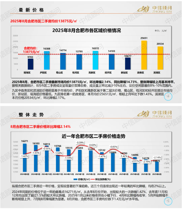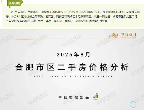 二手房市場(chǎng) | 2025年8月,合肥住宅均價(jià)1.39萬(wàn)元/㎡,環(huán)比下降2.14%,同比下降14.73%