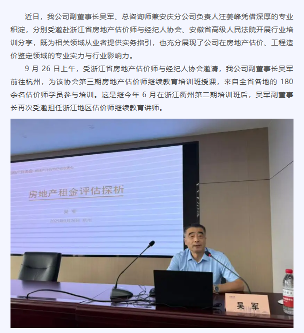 我公司吳軍和汪姜峰赴浙江省房地產估價師協會和安徽省高級人民法院作專業分享