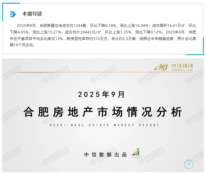 新房市場 | 2025年9月,合肥新房成交量環比下降6.18%,成交價格環比上漲1.35%