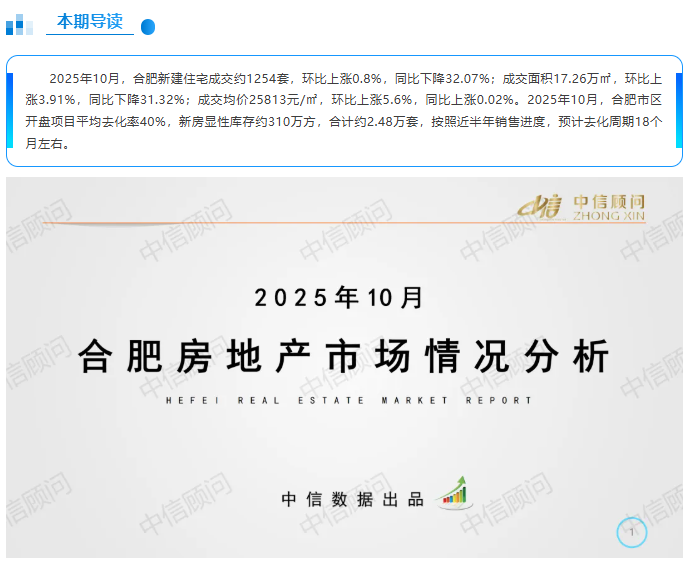 新房市場 | 2025年10月,合肥新房成交量環比上漲0.8%,成交價格環比上漲5.6%