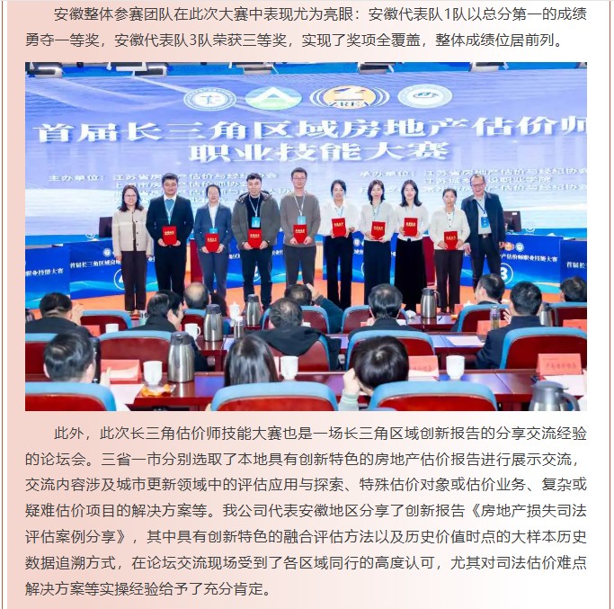 喜報!我公司在首屆長三角估價師技能大賽中斬獲二等獎