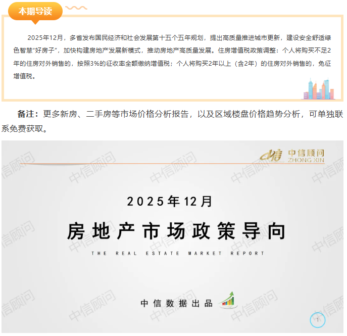 政策導向 | 2025年12月,多省發布國民經濟和社會發展“十五五”規劃,提出推動房地產高質量發展