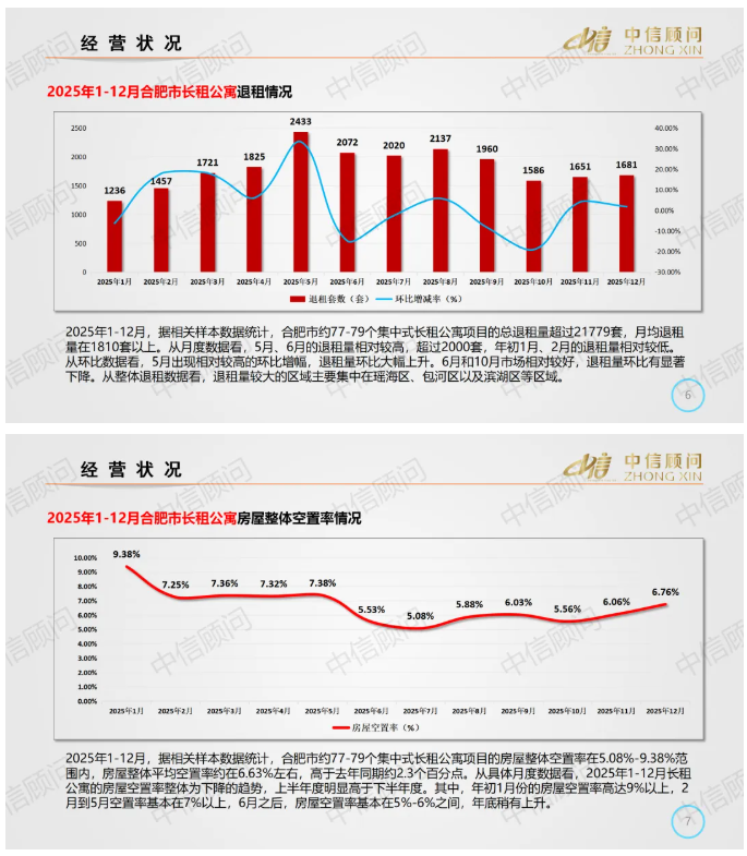 租賃市場 | 2025年1-12月,合肥長租公寓市場空置率約6.6%,市場節點性簽約明顯