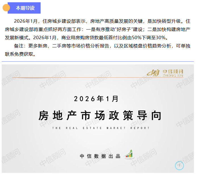 政策導向 | 2026年1月,商業用房購房貸款最低首付比例由50%下調至30%